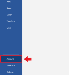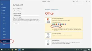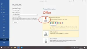 Open any Ms Office Application Like word or Exel and the click on Account in the left side below corner