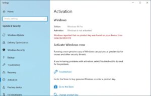 - Go to Update & Security > Activation.